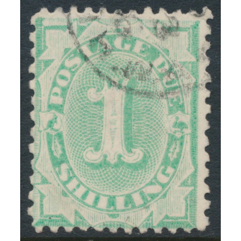 1902 1/- emerald-green Postage Due, completed base, perf. 12:11 with upright crown NSW watermark, used – no thins, tears or bends.