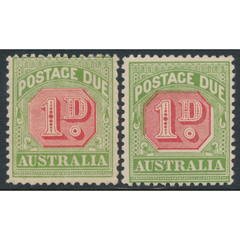 AUSTRALIA - 1909 1d red/green Postage Due, die I & die II, crown A watermark, MH – SG # D64+D64b
