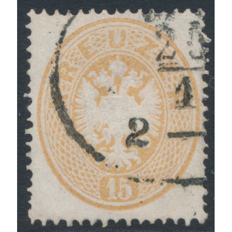AUSTRIA / ÖSTERREICH 1863 15Kr pale brown Coat of Arms, perf. 14:14, used – no thins, tears or bends. Michel Cat. # 28a