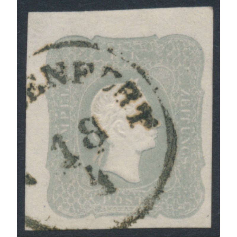 AUSTRIA / ÖSTERREICH 1861 1.05Kr deep grey Newspaper Stamp, used – no thins, tears or bends. Has a Ferchenbauer photo-certificate. Michel Cat. # 23b