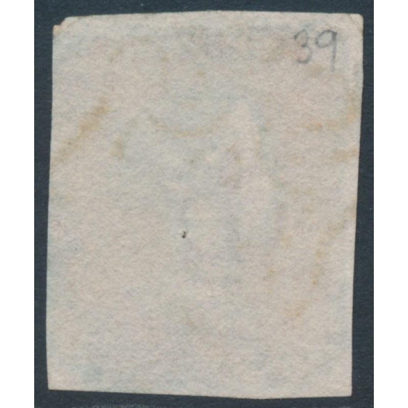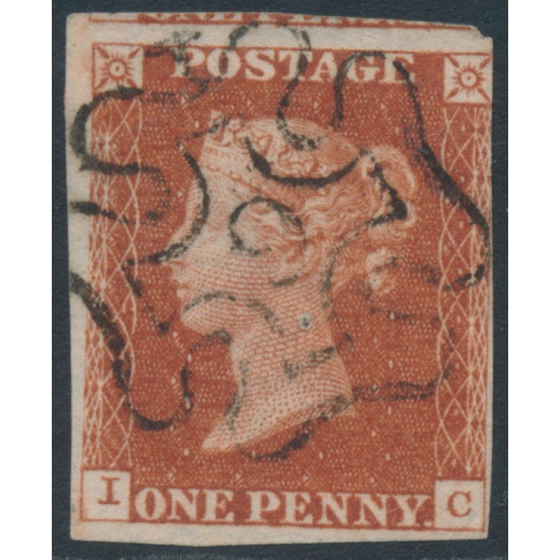 1843 1d red-brown Queen Victoria, imperforate, plate 39, check letters IC, used – has a ‘9’ Maltese Cross cancel, the stamp has a pin-hole.