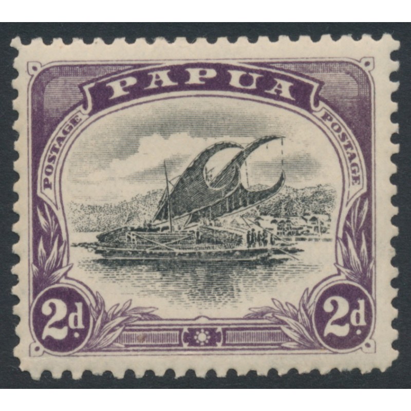1908 2d black/purple Lakatoi, small PAPUA, perf. 11:11, upright crown double-lined A watermark, mint hinged – no thins, tears or bends.