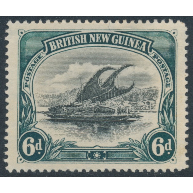PAPUA / BNG - 1901 6d black/myrtle-green Lakatoi, vertical rosettes watermark, used – SG # 14