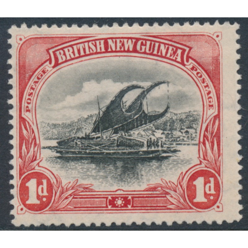 PAPUA / BRITISH NEW GUINEA / B.N.G. 1901 1d black/carmine Lakatoi, vertical rosettes watermark, mint hinged – no thins, tears or bends. SG Cat. # 10