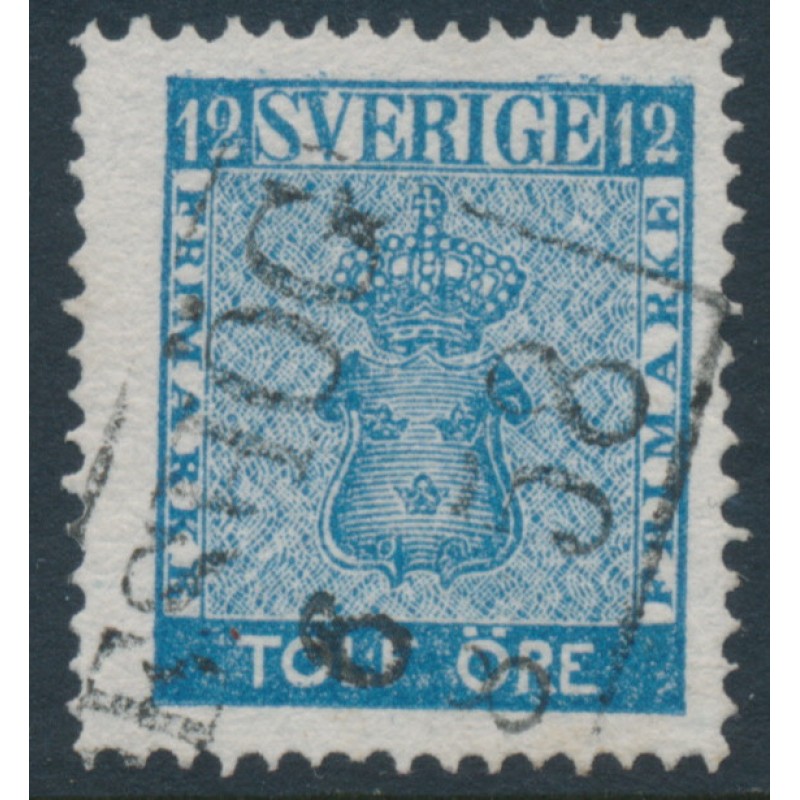 SWEDEN - 1858 12öre greenish blue Coat of Arms, used – Facit # 9a2