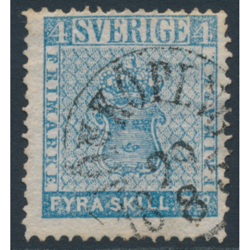 SWEDEN / SVERIGE 1855 4 Skilling pale blue (medium paper) Coat of Arms, used – no thins, tears or bends. Facit Cat. # 2h¹