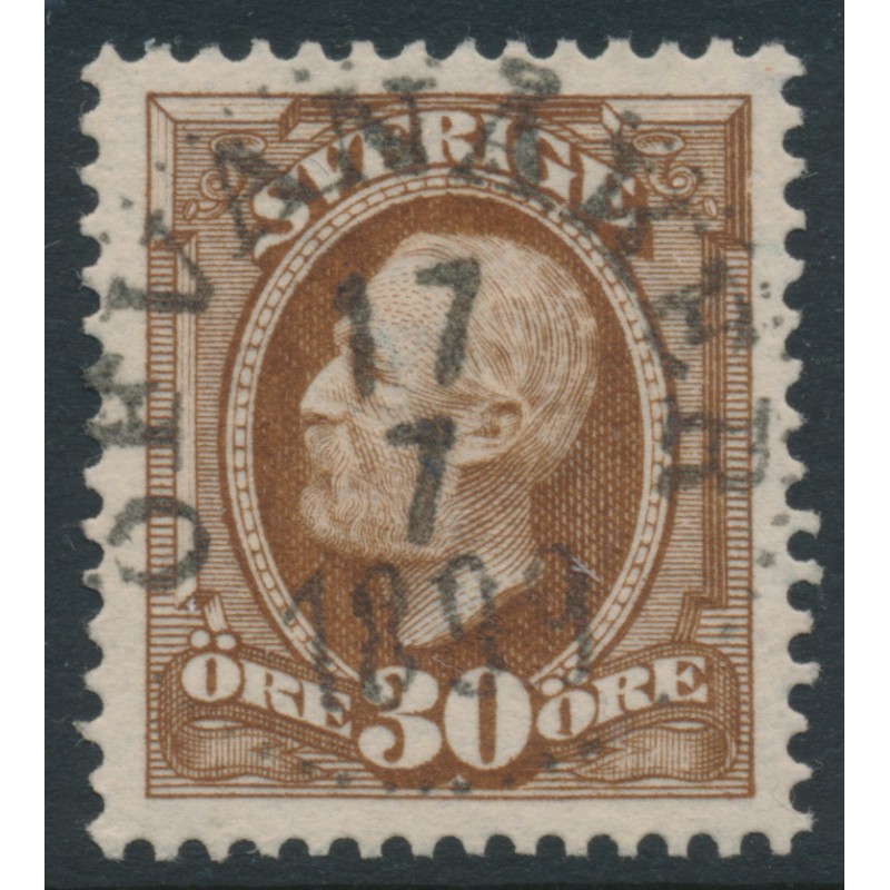 SWEDEN - 1891 30öre yellowish brown Oscar II, inverted crown watermark, used – Facit # 58avm¹