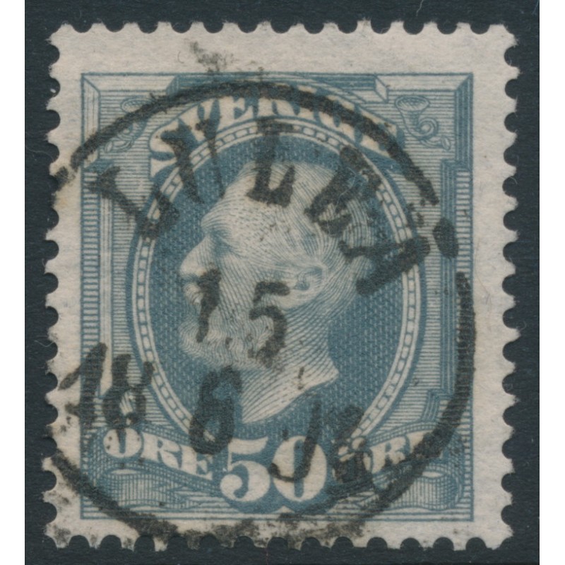 SWEDEN - 1891 50öre bluish grey Oscar II, portions of two crown watermarks, used – Facit # 59avm²