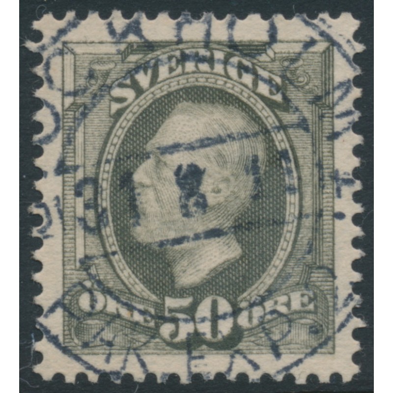 SWEDEN / SVERIGE 1891 50öre olive-grey Oscar II, used – STOCKHOLM 31 VIII 1912 cancel, no thins, tears or bends. Facit Cat. # 59d Michel Cat. # 48c