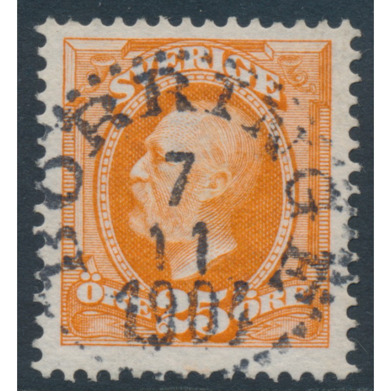 SWEDEN / SVERIGE 1896 25öre reddish orange Oscar II, used – BÖRRINGE 7 XI 1904 cancel, no thins, tears or bends. Facit Cat. # 57a² Michel Cat. # 46