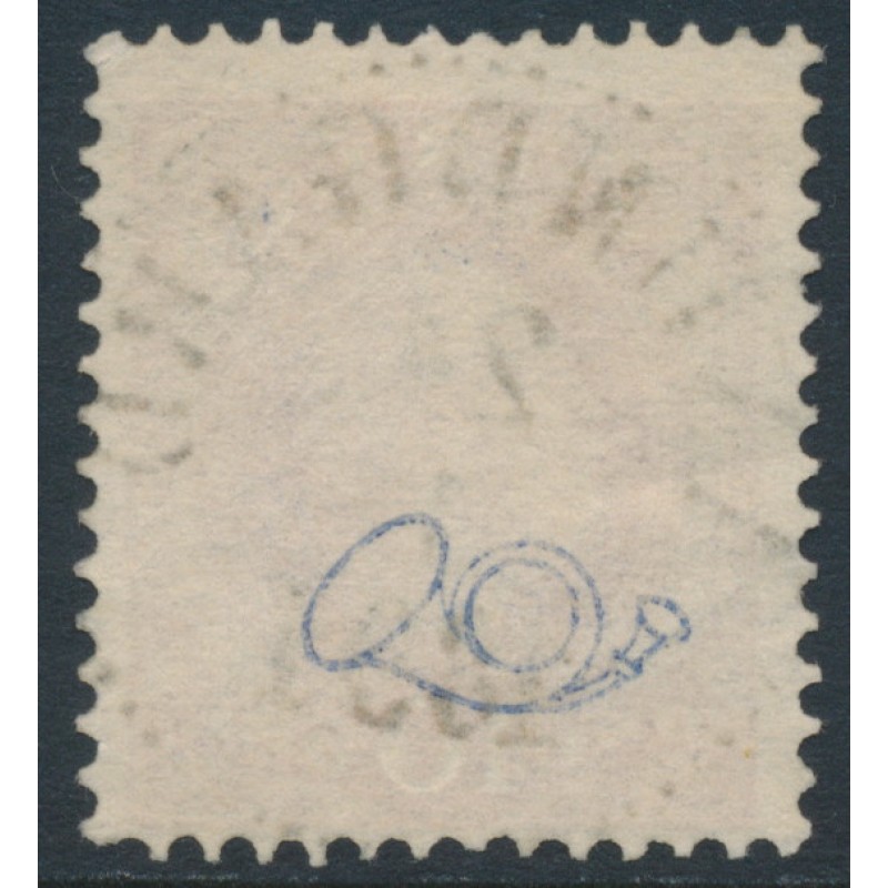 SWEDEN / SVERIGE 1886 10öre dull rose Oscar II, posthorn on back, used – ANUNDGÅRD 24 I 1891 cancel, no thins, tears or bends. Facit Cat. # 45d Michel Cat. # 38