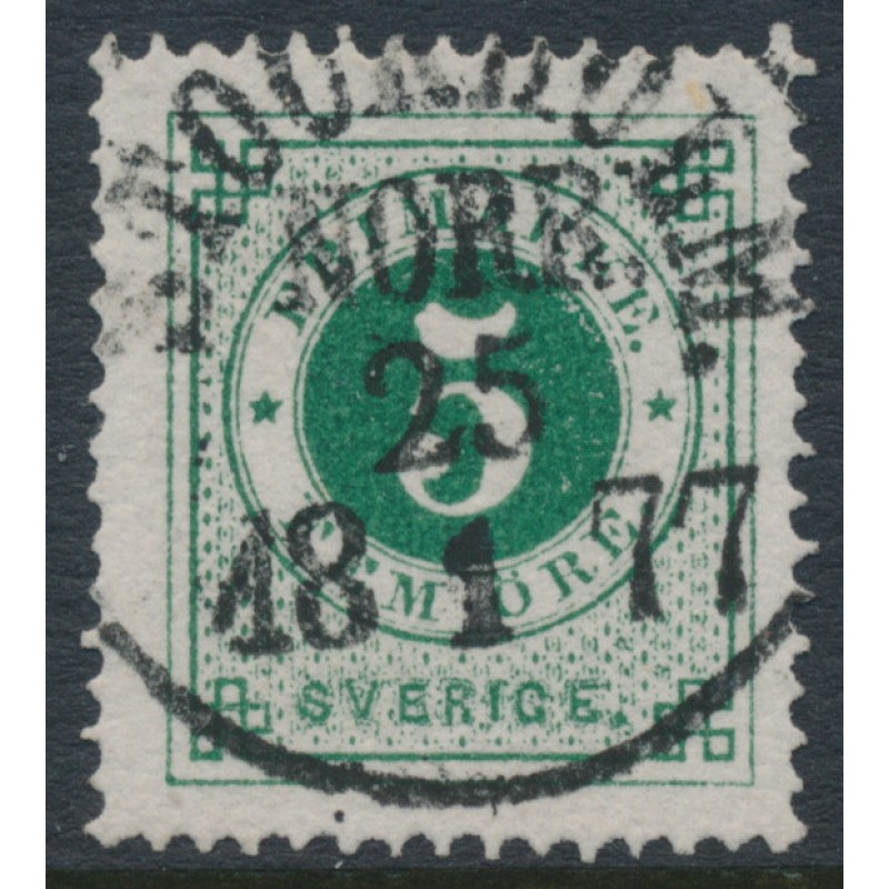 SWEDEN / SVERIGE 1872 5öre deep green Ring Type, perf. 14, used – STOCKHOLM NORR 25 I 1877 cancel, no thins, tears or bends. Facit Cat. # 19g Michel Cat. # 19A