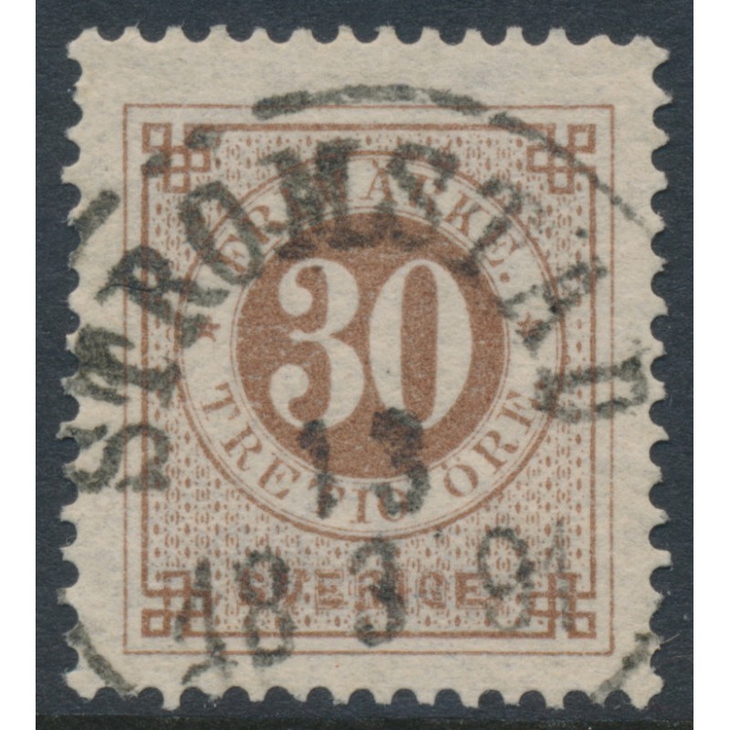 SWEDEN - 1886 30öre yellowish brown Ring Type, perf. 13 with posthorn, used – Facit # 47e