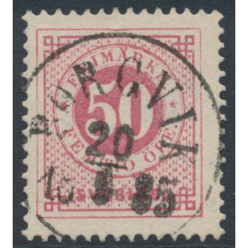 SWEDEN / SVERIGE 1878 50öre carmine-rose Ring Type (Ringtyp), perf. 13, used – BORGVIK 20 IX 1885 cancel, no thins, tears or bends. (S-län) Facit Cat. # 36h Michel Cat. # 25B