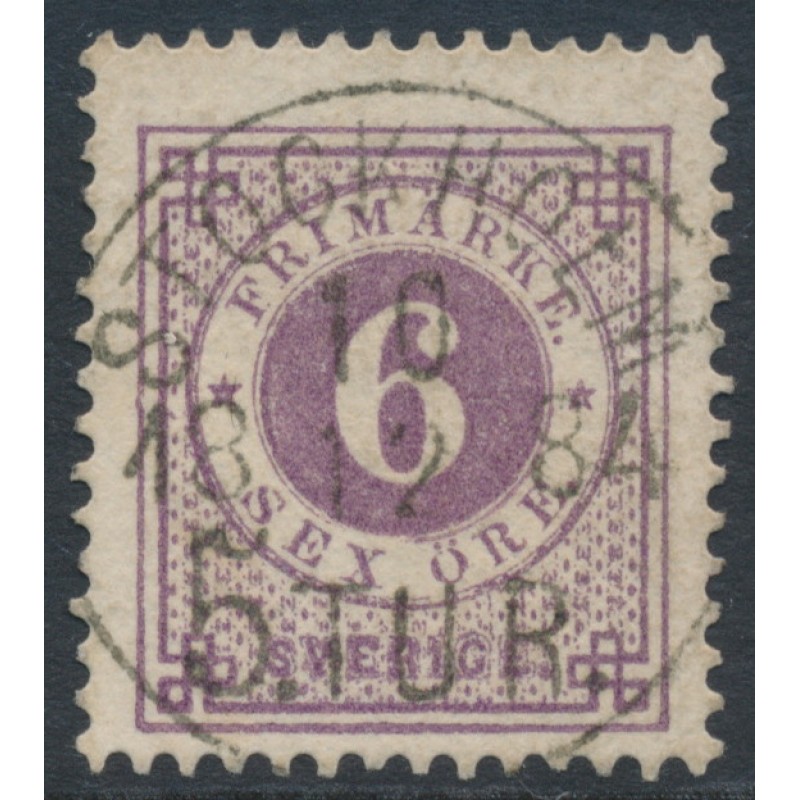 1877 6öre bluish lilac Ring Type, perf. 13, used – STOCKHOLM 10 XII 1884 cancel, no thins, tears or bends. Has had the shade determined by Mats Nilsson. He rated the quality as 4.3.5 – Lyxstämpel!