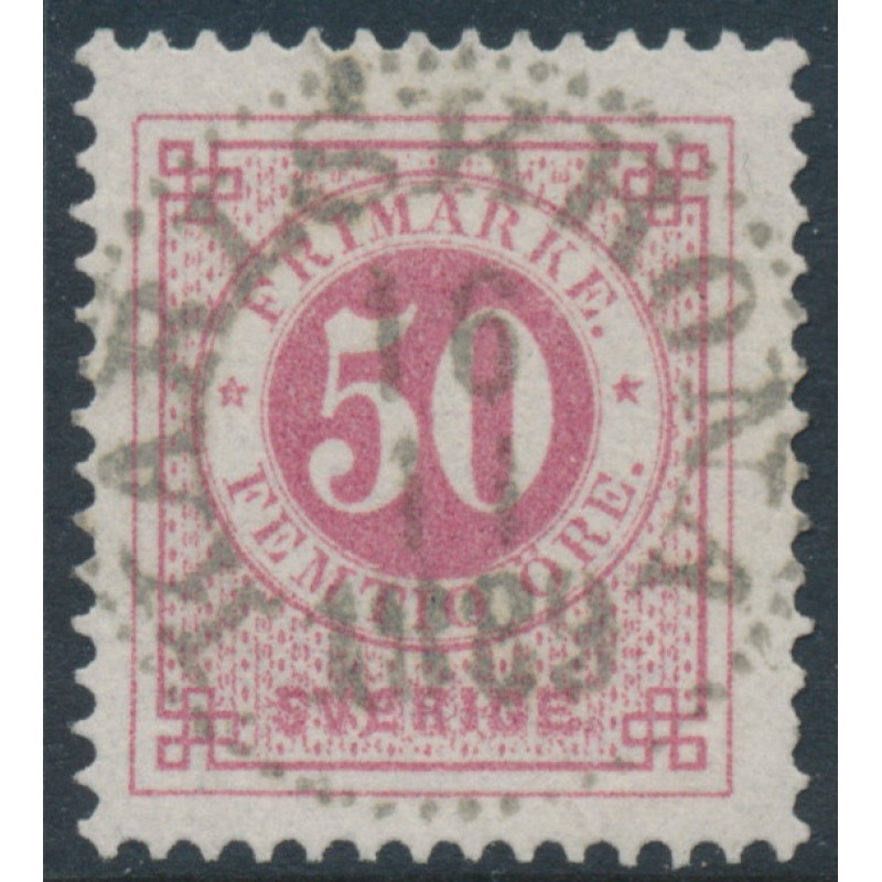 SWEDEN - 1886 50öre carmine-rose Ring Type, perf. 13 with posthorn, used – Facit # 48a