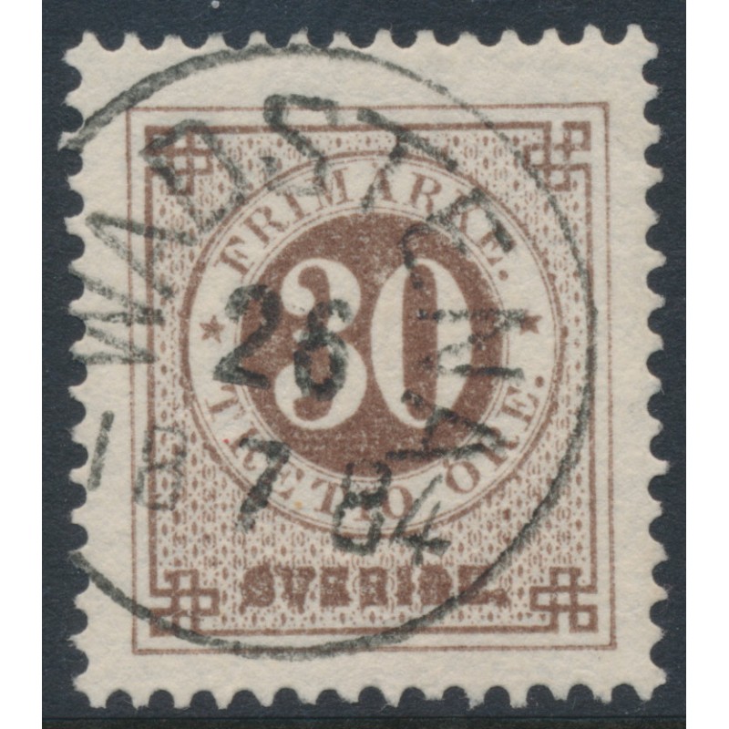 SWEDEN / SVERIGE 1877 30öre brown Ring Type, perf. 13, used – WADSTENA 28 VII 1884 cancel, no thins, tears or bends. Facit Cat. # 35i Michel Cat. # 24B