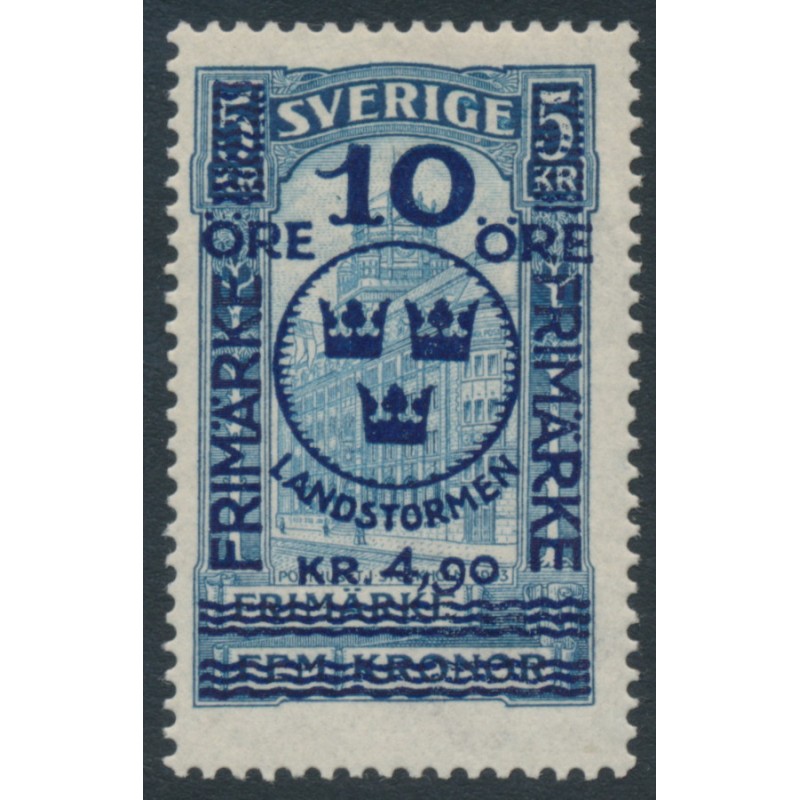 SWEDEN / SVERIGE 1916 10öre + 4.90Kr on 5Kr blue GPO Landstorm II overprint, mint hinged – no thins, tears or bends. Facit Cat. # 125 Michel Cat. # 96