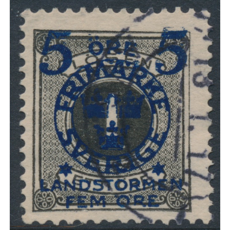 SWEDEN - 1916 5+FEM öre on 1öre black Postage Due Landstorm II overprint, used – Facit # 115