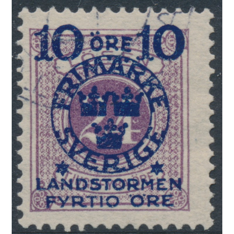 SWEDEN - 1916 10+FYRTIO öre on 24öre red-lilac Postage Due Landstorm II overprint, used – Facit # 121b