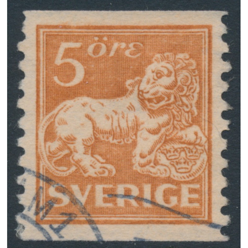SWEDEN - 1921 5öre brown Lion, type I, perf. 2-sides, KPV watermark, used – Facit # 141Abz