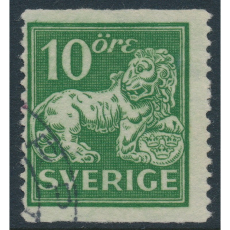 SWEDEN / SVERIGE 1924 10öre green Lion, perf. 13 on 2-sides, lines watermark, used – no thins, tears or bends. Facit Cat. # 144Ecx Michel Cat. # 176IXAI Scott Cat. # 137