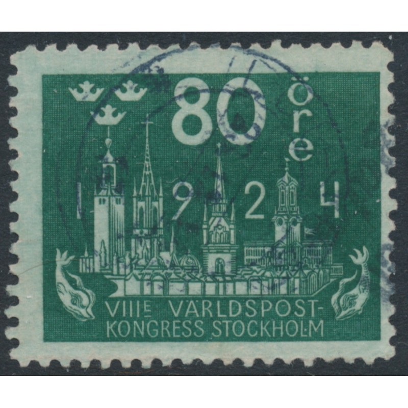 SWEDEN - 1924 80öre blue-green World Postal Congress, used – Facit # 207