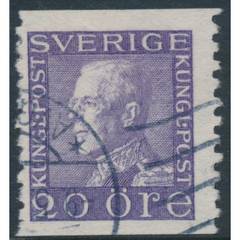 SWEDEN - 1921 20öre violet Gustav V, perf. 9¾ 2-sides, signed KAN, used – Facit # 179Ag