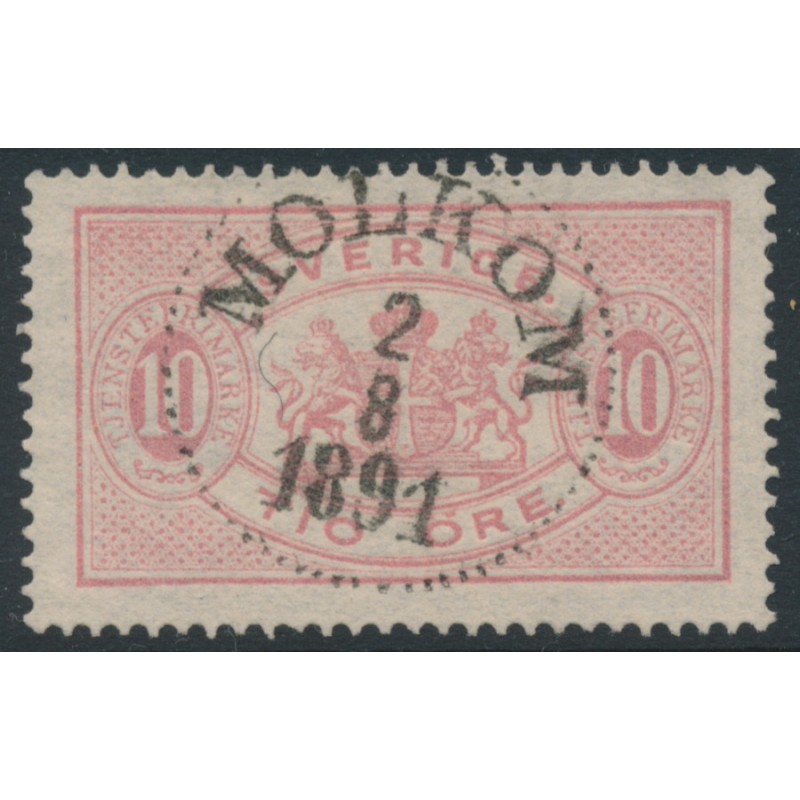 1885 10öre rose on yellowish paper Official (Tjänstefrimärke), perf. 13, used – MOLKOM 2 VIII 1891 cancel, no thins, tears or bends.