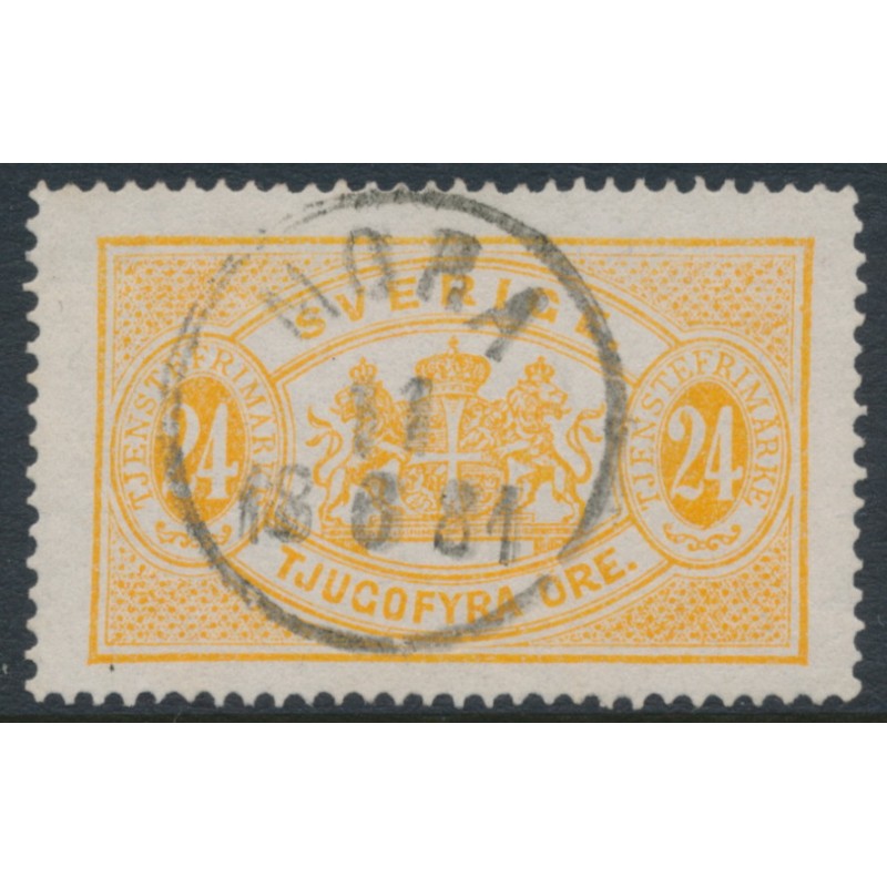 1874 24öre reddish orange Large Official (Tjänstemärke), perf. 14, used – MORA 11 VI 1881 cancel, no thins, tears or bends.