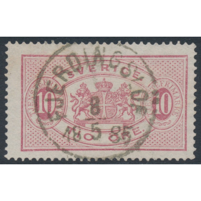 1885 10öre dull carmine Official (Tjänstefrimärke), perf. 13, used – FJERDINGSLOF 8 V 1885 cancel, no thins, tears or bends. (M-län)
