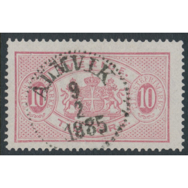 1885 10öre dull carmine Official (Tjänstefrimärke), perf. 13, used – ALMVIK 9 II 1885 cancel, no thins, tears or bends.