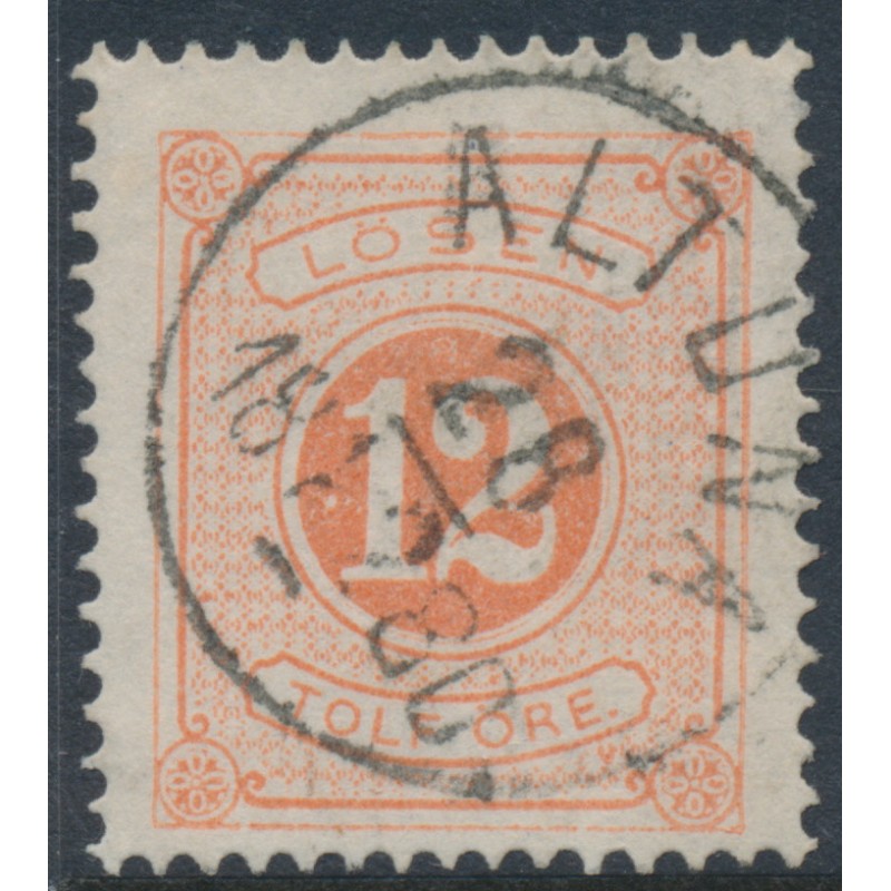 SWEDEN / SVERIGE 1874 12öre orangish red Postage Due (Lösen), perf. 14, used – ALTUNA 28 XII 1880 cancel, no thins, tears or bends. Facit Cat. # L5b Michel Cat. # P5A