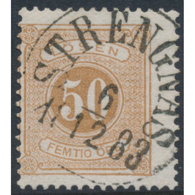1877 50öre dull yellowish orange-brown Postage Due (Lösen), perf. 13, used – STRENGNÄS 6 XII 1883 cancel, no thins, tears or bends.