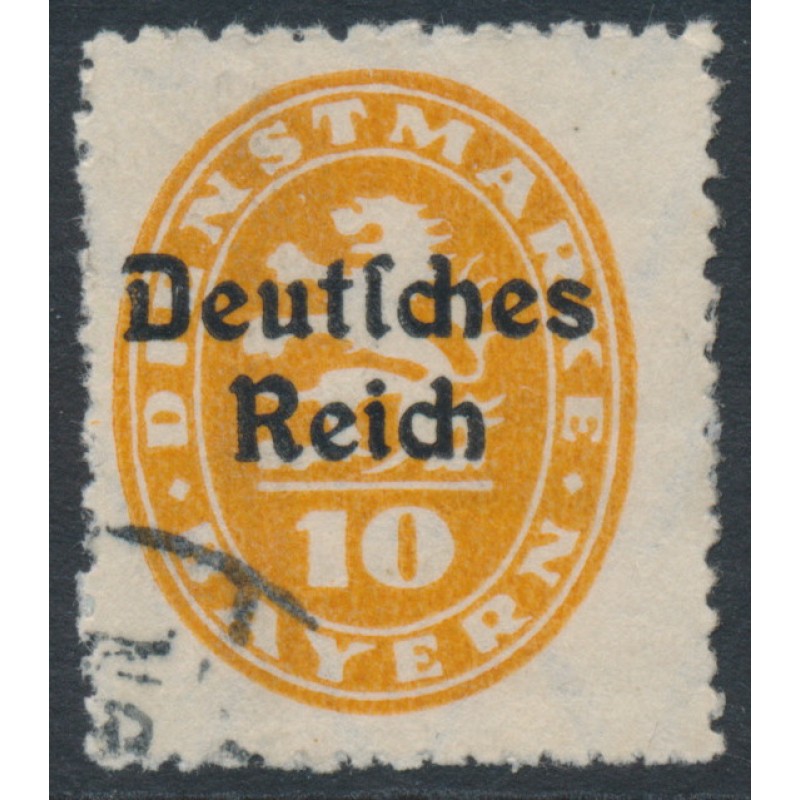 1920 10pf yellow-orange Bavarian Official overprinted Deutsches Reich, used – no thins, tears or bends. Has been expertised by Infla Berlin.