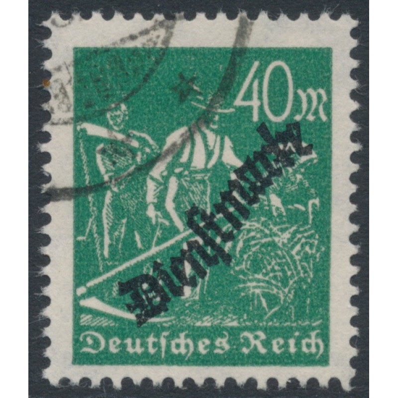 1923 40Mk green Harvester overprinted Dienstmarke, used – no thins, tears or bends. Has been expertised by Infla Berlin.