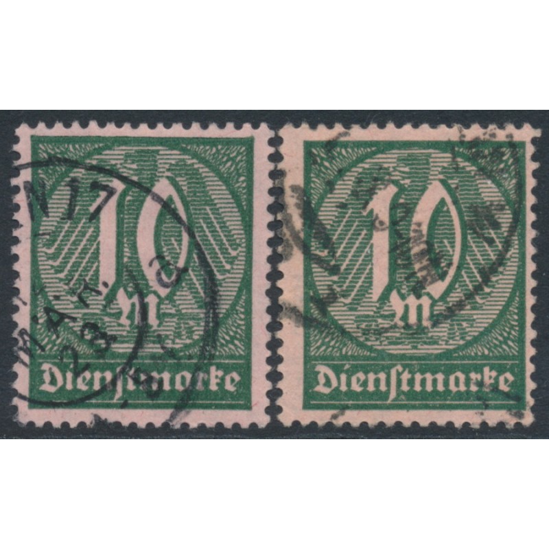 GERMANY - 1921 10Mk green Official, both listed shades, used – Michel # D68a+D68b