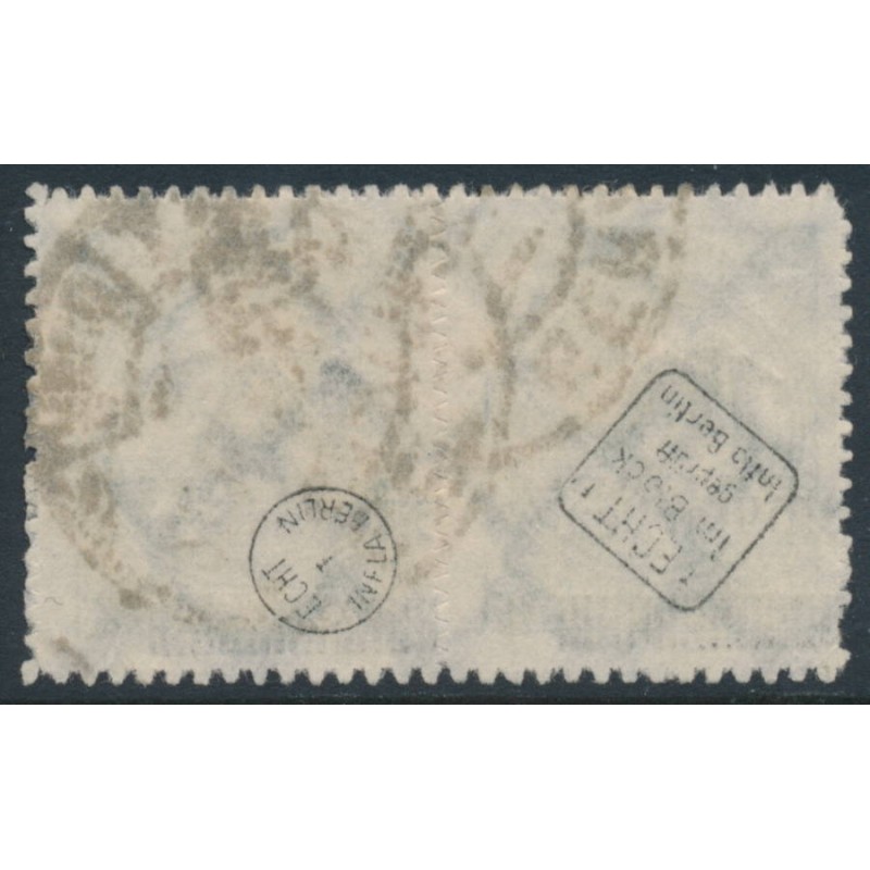 1923 10Milliarden on 50Millionen Mk deep olive-green Numeral, rouletted, horizontal pair with misplaced overprint, used – no thins, tears or bends. Has been expertised by Infla-Berlin BPP.