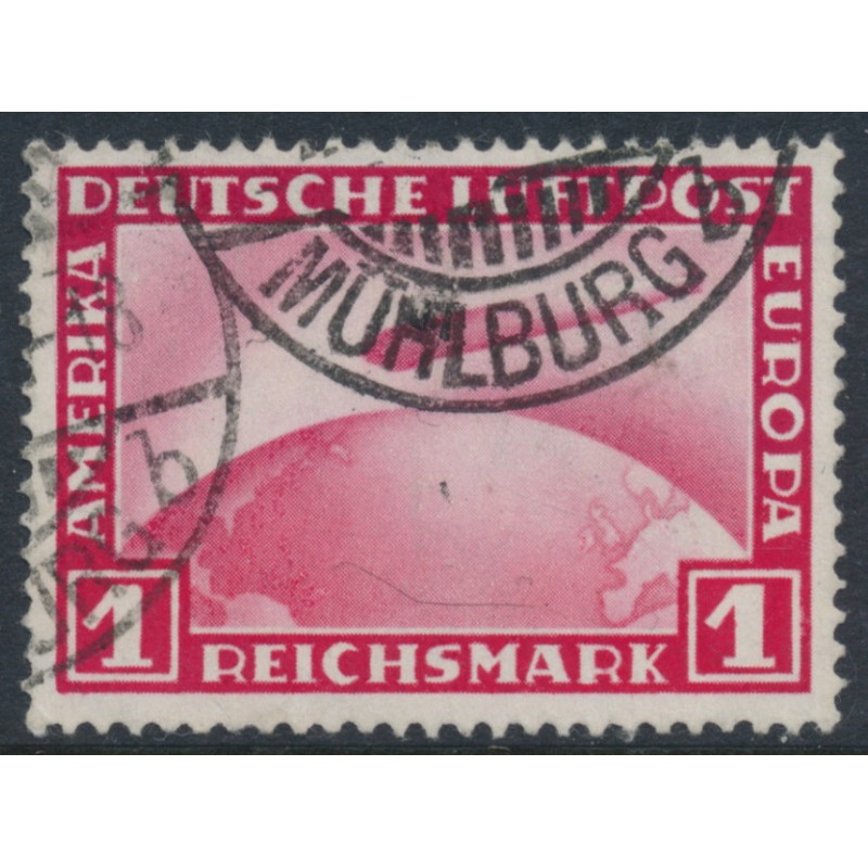 GERMANY / DEUTSCHES REICH 1931 1RM red Graf Zeppelin, used – no thins, tears or bends. Michel Cat. # 455