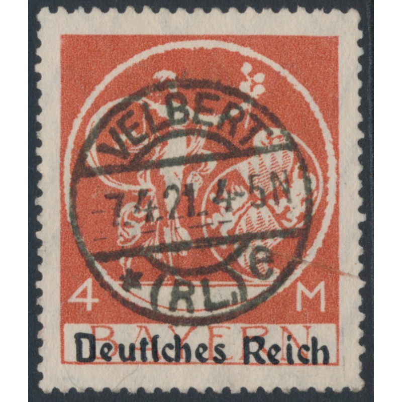 1920 4Mk orange-red Bavarian issue overprinted DEUTSCHES REICH, used – no thins, tears or bends. Has been expertised by Infla-Berlin.