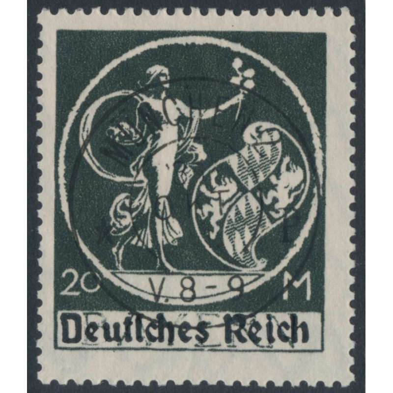 1920 20Mk olive-black Bavarian issue overprinted DEUTSCHES REICH, used – no thins, tears or bends. Has been expertised by Infla-Berlin.