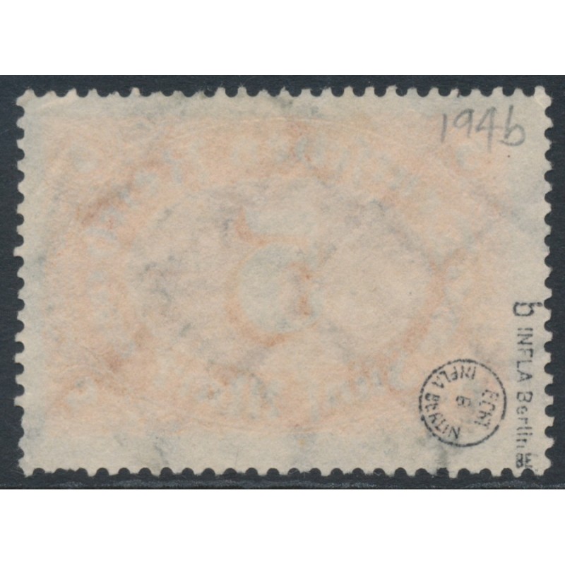 1922 5Mk brown-orange Numeral, network watermark (Waffeln), used – no thins, tears or bends. Has been expertised as genuine by Infla Berlin.