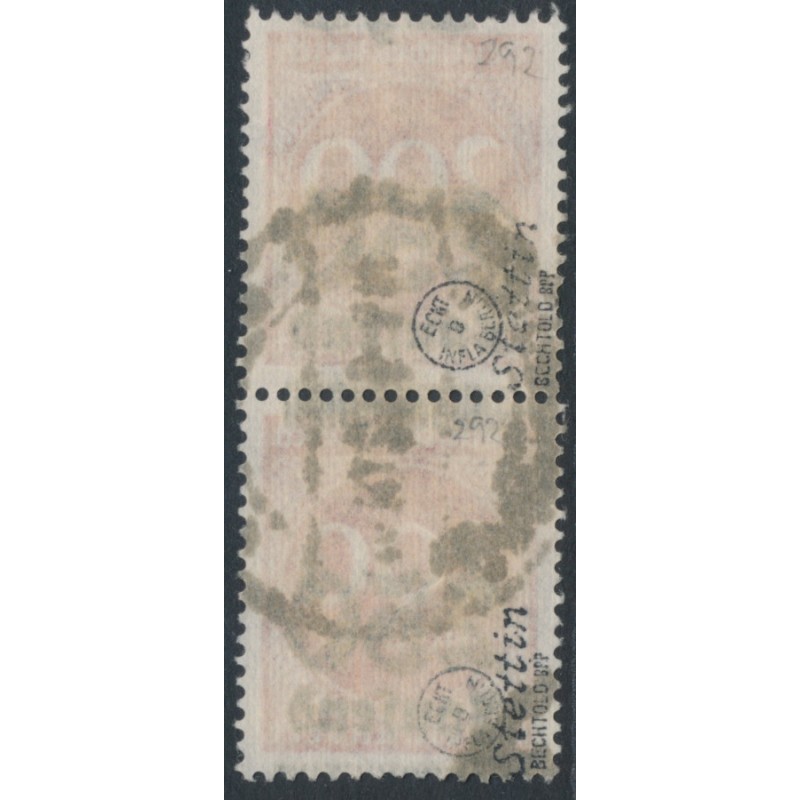 1923 250Tausend on 200Mk carmine-red Numeral, vertical pair from the top of the sheet with misplaced overprint, used – no thins, tears or bends. Has been expertised as genuine by Bechtold BPP.
