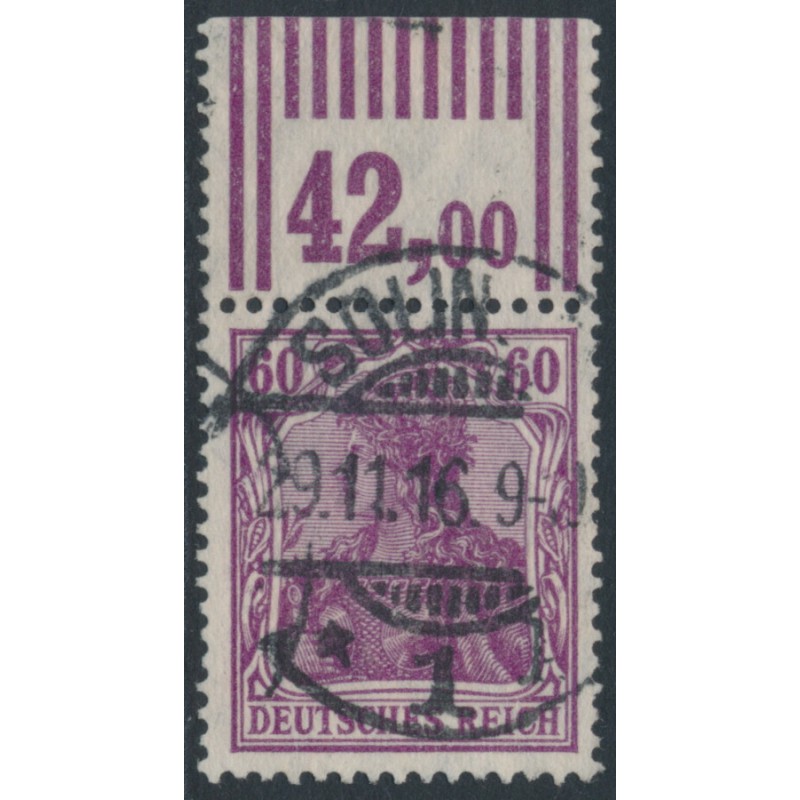 1915 60pf purple Germania, diamonds watermark, peace-time printing, with upper selvage, used – no thins, tears or bends. Has been expertised by Jäschke-Lantelme BPP.