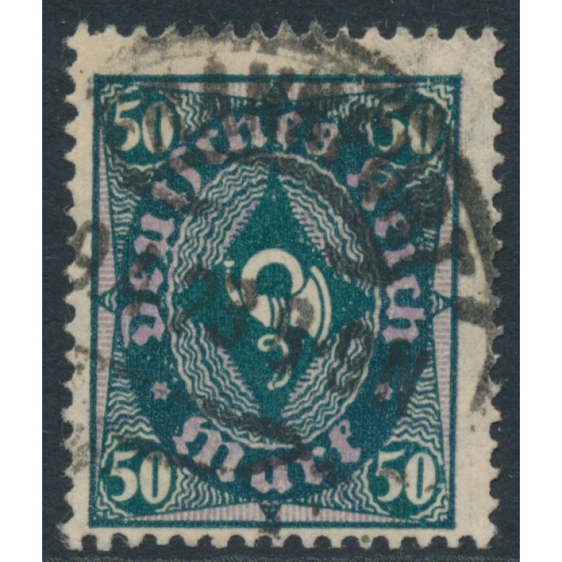 GERMANY - 1922 50Mk green/violet Posthorn, Vierpass watermark, used – Michel # 209Y