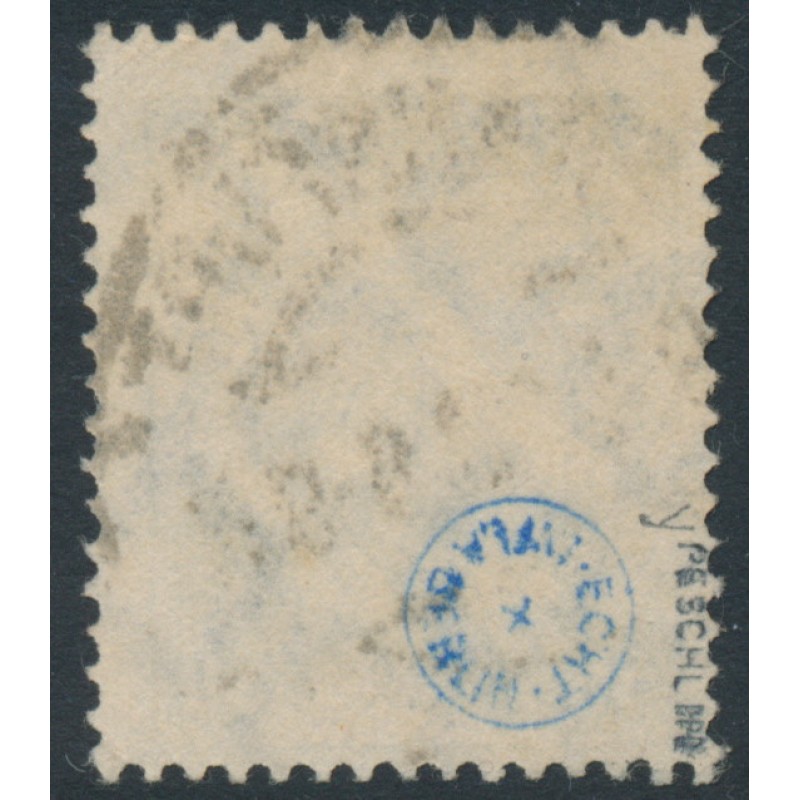 1922 50Mk deep green/purple Posthorn, with Quatrefoil watermark (Vierpass-Wz), used – has a Frankfurt 9 IV 1923 cancel, no thins, tears or bends. Has a Weinbuch photo-certificate which states that the stamp is genuine and in fault-free condition, except for a bent corner perforation tip.