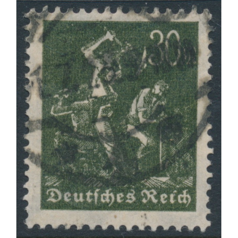 GERMANY - 1923 30Mk olive-black Miner, network watermark, used – Michel # 243b