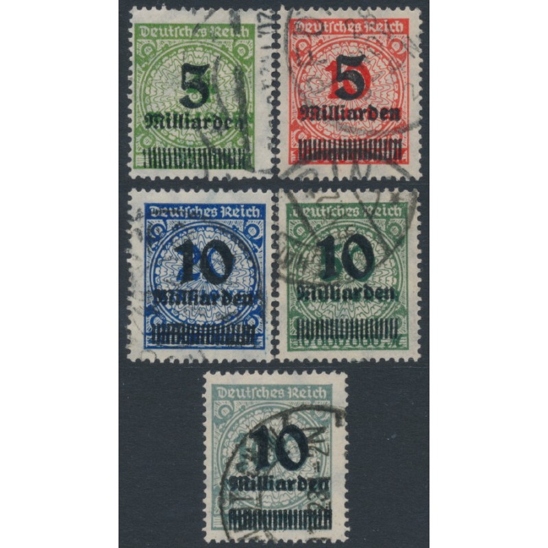 GERMANY - 1923 Milliarden overprints short set of 5, used – Michel # 333-337