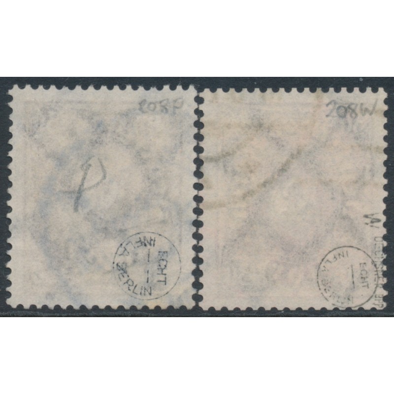 GERMANY - 1922 30Mk Posthorn, thick & thin numerals, used – Michel # 208P+208W
