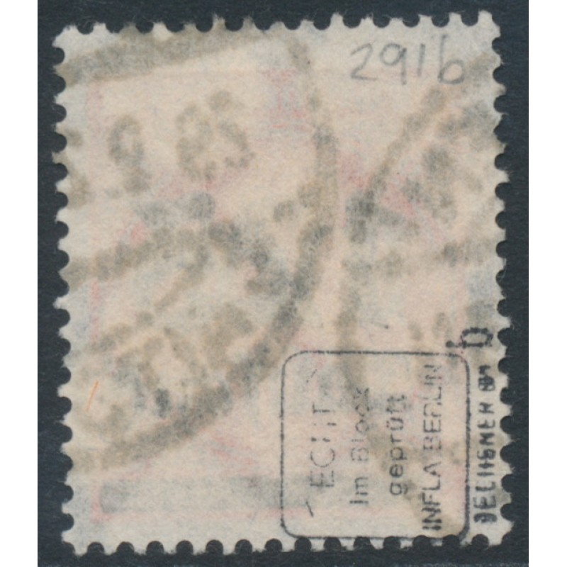 1923 125Tausend on 1000Mk vermilion Numeral, used – no thins, tears or bends. Has been expertised as genuine by Infla Berlin.